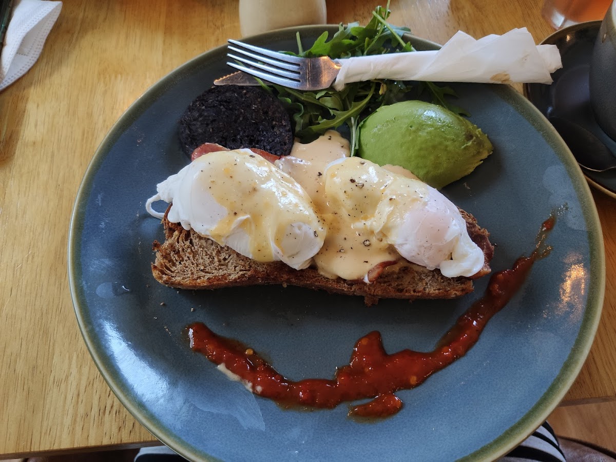 Had poached eggs with hollandaise and smoked salmon. It seemed like a small portion but it was the perfect size for Me to not feel too full or still hungry. Cappuccino was great! Had a great balance of coffee and oat milk. Would totally recommend :)